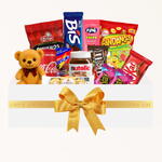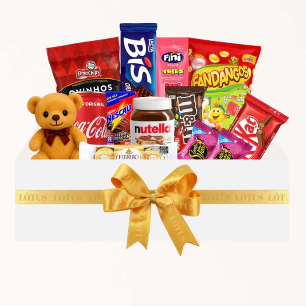 Se você conhece alguém que é louco por um mix de doce e salgado, essa cesta é a escolha dos sonhos. É uma festa de delícias, com Bala Fini, Salgadinho, Ovinho de Amendoim, uma Coca-Cola, MMs, Nutella,Toddynho para dar aquele sorriso, 3 bombons Ferrero Rocher, um Sonho de Valsa e Bis para não parar de comer. E para deixar tudo ainda mais especial, temos o Ursinho Pitico, que será uma lembrança desse momento delicioso. Tudo isso numa cesta que é puro charme, embrulhada com papel celofane e uma fita de cetim que dá o toque final. É o presente ideal para fazer qualquer um voltar a ser criança, não importa a idade. 🎈🍭 Ficha Técnica - Ovinho de Amendoim - Salgadinho - Coca Cola - Bebida Nescau - Bís - Nutella - Ferrero Rocher 3uni - Kit Kat - Mms - Bala Fini - Chaveirinho Pitico - Bombons Sonho de Valsa Informações Adicionais: Todos os presentes são finalizados com celofane e fita de cetim