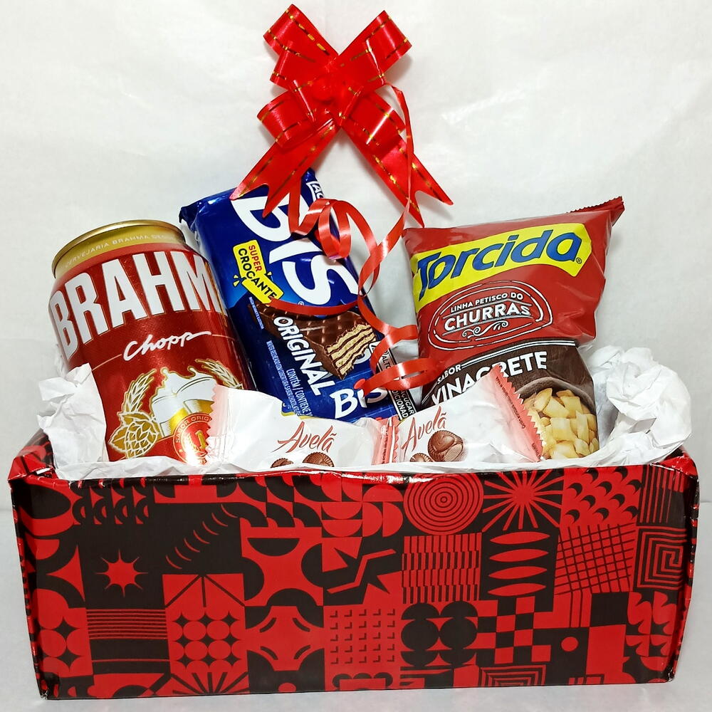 O beleza está nos detalhes e nas cores! Surpreenda quem você ama com nossa Cesta Paixão. Uma combinação irresistível em vermelho e preto, recheada com: *Cerveja Brahma 350ml *2 Amendoins 24g *3 bombons Avelã *Torcida Vinagrete 60g. Porque todo Dia é Dia de demonstrar afeto. Garanta a sua e faça o coração de alguém bater mais forte! Embalado com celofane transparente e laço. Peça já o seu!