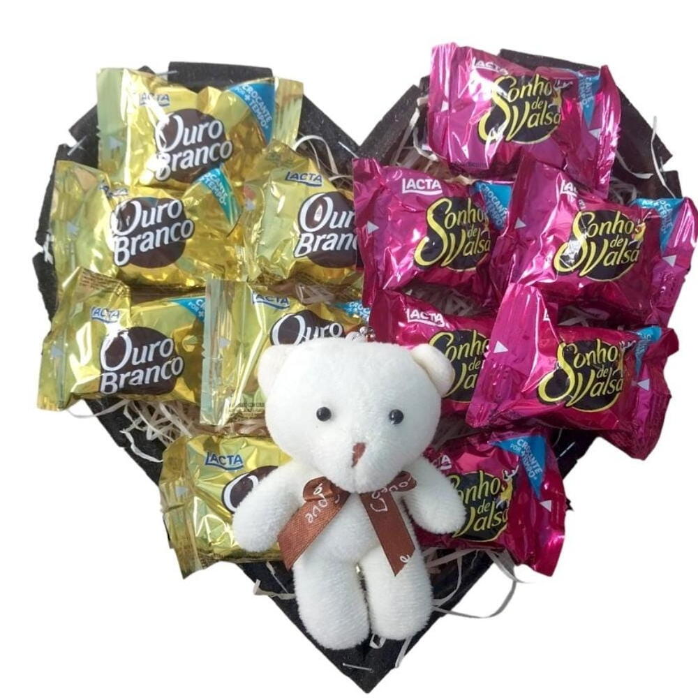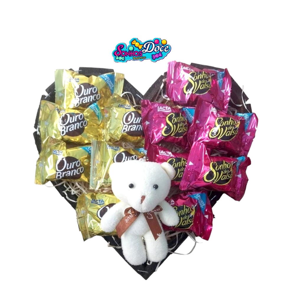 bombom sonho de valsa - 6 pcs bombom ouro branco - 6 pcs ursinho de pelúcia - 1 pcs coração de madeira - 1 pcs