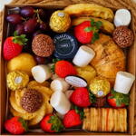 torradas - 1 pcs cartão personalizado - 1 pcs ferrero rocher - 1 pcs laço - 1 pcs pão de queijo - 1 pcs brigadeiros - 1 pcs croissant recheado - 1 pcs marshmallow - 1 pcs mini bolo - 1 pcs wafer - 1 pcs caixa craft - 1 pcs embalagem celofane - 1 pcs uvas e morangos - 1 pcs mini geleia importada st dalfour - 1 pcs