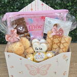 Sua busca pela cesta de café da manhã perfeita para o próximo Dia das Mães termina aqui. Esta cesta luxuosa contém cinco deliciosos pães de queijo, um biscoito folhado doce e chocolate quente cremoso e café gourmet ambos da sofisticada marca 3 corações. Para tornar este presente ainda mais memorável, incluímos dois biscoitos artesanais em formato de coração que trazem a doce mensagem “Eu te amo” e um belo chaveiro em formato de coração dourado com a frase com amor. A cesta é realçada por um tag dedicado ao Dia das Mães e um kit com duas necessaires temáticas, sendo uma transparente e a outra especial para o Dia das Mães. Além disso, um irresistível Ferrero Rocher de 3 unidades não poderia faltar para adoçar ainda mais a surpresa. Um presente verdadeiramente pensado com carinho e atenção nos mínimos detalhes.