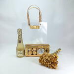 espumante freixenet cava 200ml - 1 pcs caixa de bombons ferrero rocher 100gr - 1 pcs buquê de flores secas espeta nariz - 1 pcs sacola presente em acetato - 1 pcs