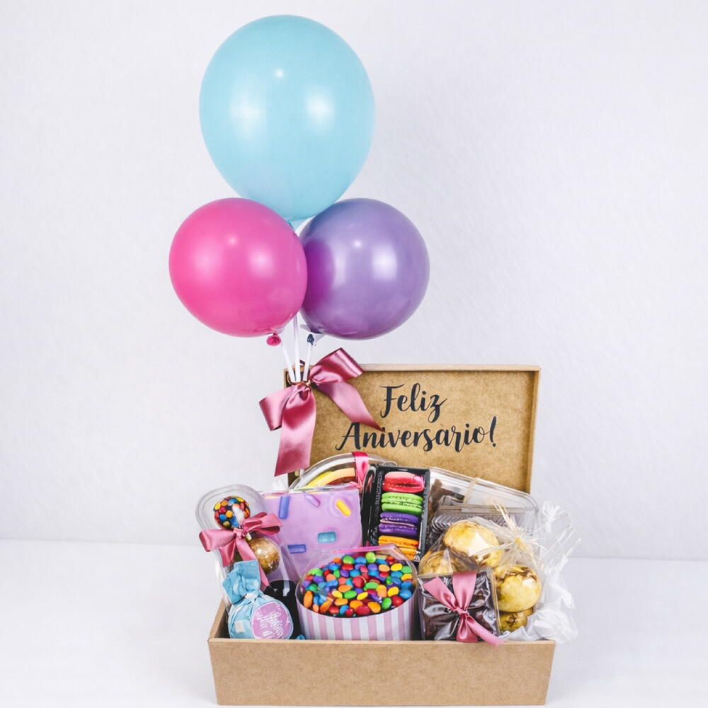 Presenteie alguém especial com esta sofisticada Cesta de Aniversário. Rica em sabor e sentimento, ela está repleta de maravilhas culinárias para tornar o dia do aniversário ainda mais especial. A cesta inclui um pão de queijo, um cartão personalizado, uma trufa divina, um ring donut recheado, um brownie gourmet e 4 unidades de macarrons nos sabores de frutas vermelhas, pistache, chocolate e caramelo com flor de sal. A deliciosa surpresa continua com uma quiche requintada, uma palha italiana, uma bela caixa de madeira 30x30, um trio de balões festivos, 300 gramas de um delicioso bolo de chocolate com confetes e um blister com 6 brigadeiros gourmet. Para completar, a cesta vem com uma petisqueira cheia de guloseimas finni, uma bebida à escolha entre suco de uva ou refrigerante, e 6 unidades de coxinhas de frango com catupiry e kibes com catupiry. Um presente alegre e apetitoso que certamente encantará.