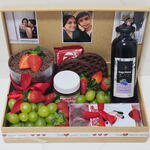 cesta - 1 pcs brigadeiros - 8 pcs bentô cake de até 4 fatias - 1 pcs wafles - 2 pcs morangos e uva - 12 pcs fotos polaroid (as fotos devem ser enviadas pelo chat) - 3 pcs kit kat 39 g - 1 pcs nutella peq 140 g - 1 pcs suco (ou bebida da sua preferência - 1 pcs consultar disponibilidade) - 1 pcs