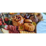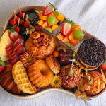 croissant - 1 pcs geleia - 1 pcs salada de frutas - 1 pcs waffle - 1 pcs gouda - 1 pcs bolinho caseiro - 1 pcs copa defumada - 1 pcs espetinho caprese - 1 pcs molho pesto - 1 pcs brie em crosta - 1 pcs naked cake - 1 pcs mini sanduíche de salame - 1 pcs cheese bolls - 1 pcs