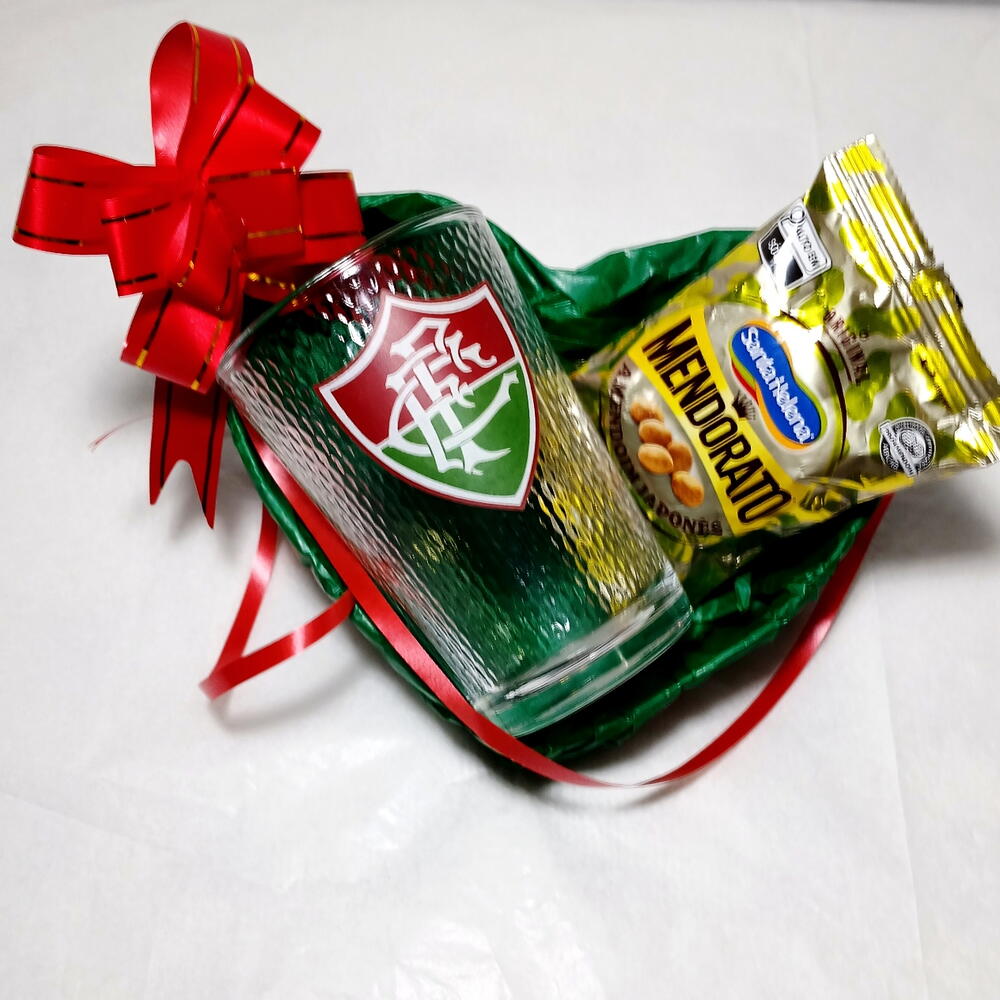 O jogo está chegando... Surpreenda um torcedor apaixonado pelo Fluzão Contém: *Copo Fluminense (vidro) 200ml *Amendoim 24g. Embalado com celofane transparente e laço. Compre o seu!