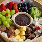 kiwi - 1 pcs morangos frescos - 1 pcs queijo gouda - 1 pcs uva sem caroço - 1 pcs marshmalows - 1 pcs calda de brigadeiro - 1 pcs