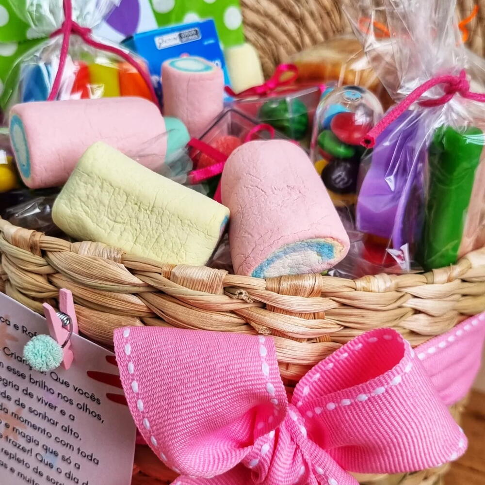 frutas - 2 pcs cookies - 2 pcs marshmallow - 1 pcs cesta taboa - 1 pcs sucos - 2 pcs polenguinhos - 2 pcs cartão - 1 pcs balas fini - 1 pcs pãozinhos - 2 pcs giz de cera - 1 pcs bolos - 2 pcs mm - 1 pcs massinha - 1 pcs embalagem colorida - 1 pcs iogurtes ou achocolatados - 2 pcs pudins - 2 pcs pães de queijos - 2 pcs