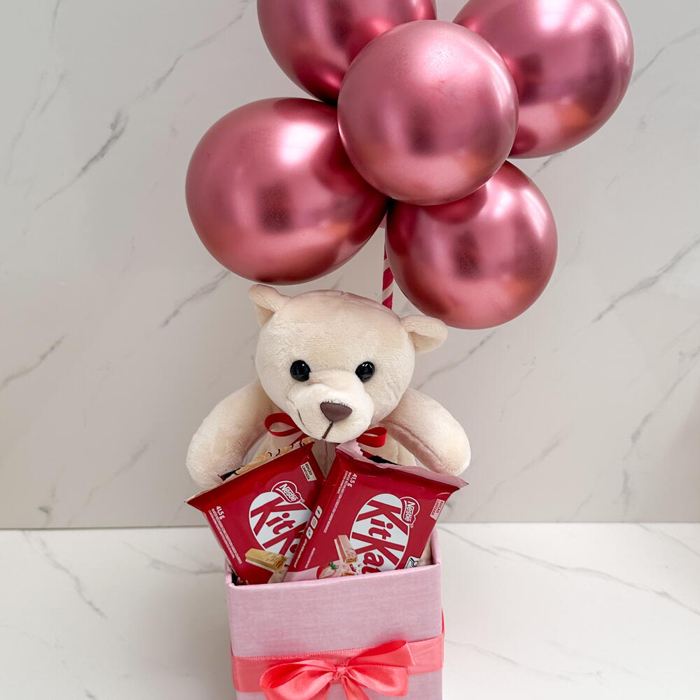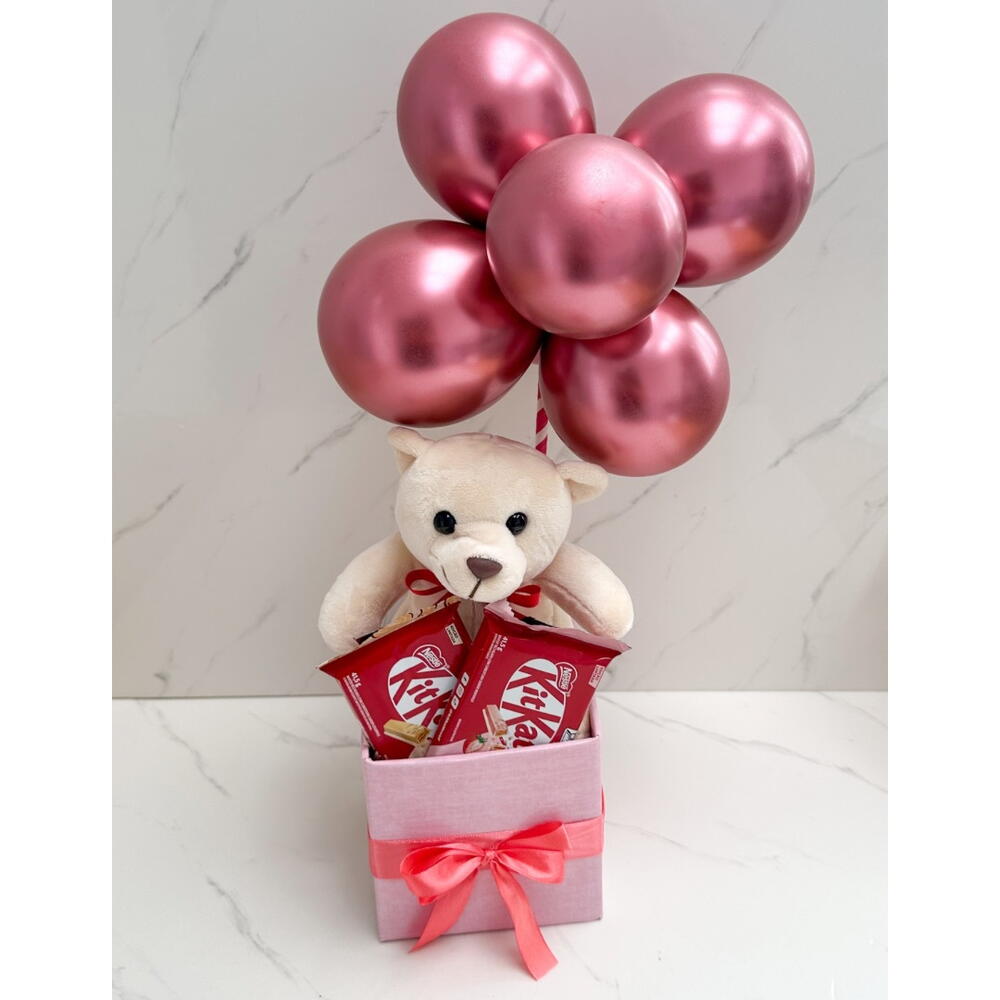 kit kat - 2 pcs balão - 1 pcs urso de pelúcia (17cm aprox) - 1 pcs