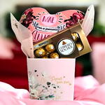 caixa de chocolate ferrero rocher 100g - 1 pcs caixa de catonagem temática. - 1 pcs coração temático com os dizeres se escreve mãe - 1 pcs mas é amor - 1 pcs