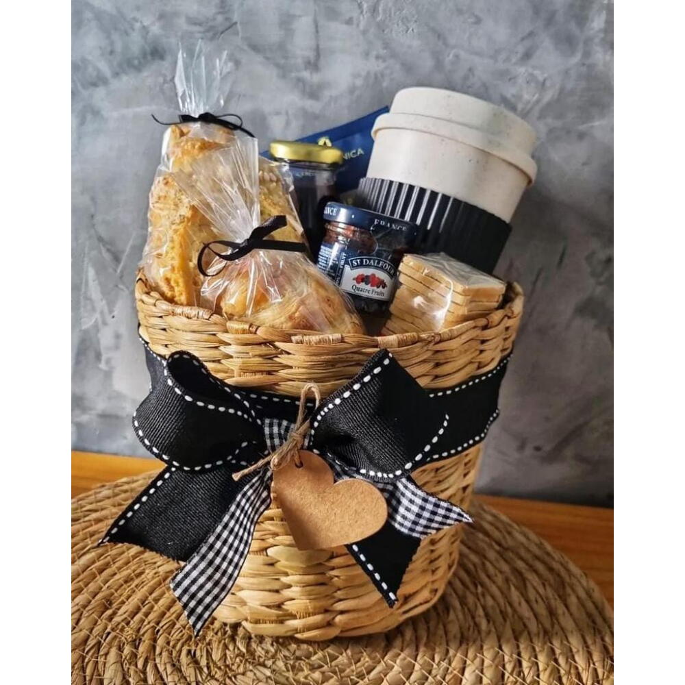 Desfrute de um começo de dia delicioso e revigorante com a nossa Cesta de Café da Manhã. Apresentada em uma charmosa cesta de taboa, esta seleção inclui um pão fresco do dia e um irresistível croissant recheado, perfeitos para acompanhar com a mini geleia importada St Dalfour. Oferecemos também um copo que pode ser preenchido com o suco à sua escolha, laranja ou uva, complementado por saborosas torradas. Para os apreciadores de café, incluímos um drip coffee para começar bem o dia. Como toque final, incluímos um cartão personalizado, onde poderá deixar sua mensagem especial.