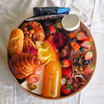 O Platter Box Brunch é um convite para um café da tarde inesquecível, ideal para até 3 pessoas. Esta deliciosa caixa personalizada traz uma variedade de sabores e texturas para satisfazer todos os paladares. Desde o Brie em Crosta, o suco natural de laranja e o café Drip Coffee até os croissants, waffles e pães frescos, cada item foi selecionado com cuidado para garantir uma experiência gastronômica excepcional. Além disso, a diversidade de queijos, frios, frutas frescas, cookies, salada de frutas, iogurte com granola, manteiga, Nutella e geleia proporciona um equilíbrio perfeito entre indulgência e nutrição. Este Platter Box Brunch é perfeito para desfrutar com amigos, familiares ou para surpreender alguém especial em qualquer ocasião especial.