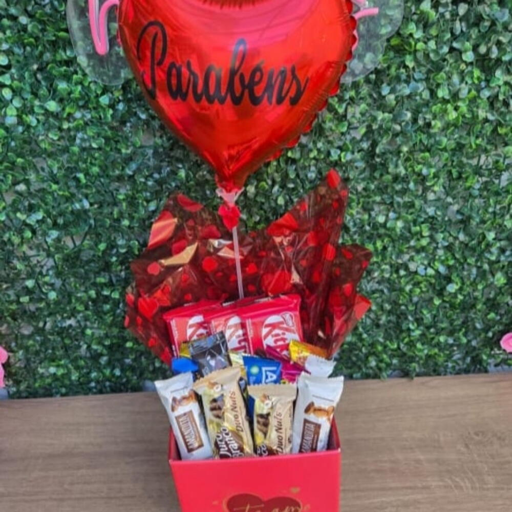 kit kat - 3 pcs caixa de bombom - 1 pcs balão personalizado - 1 pcs caixa decorada - 1 pcs