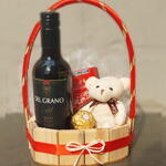 pelucia chaveiro ursinho - 1 pcs vinho del grano semisec 250ml - 1 pcs chocolate lindt lindor 37g - 1 pcs ferreiro rocher individual - 1 pcs linda cesta de madeira decorada - 1 pcs