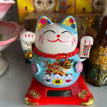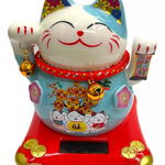 O Manekineko é uma figura amplamente conhecida, como um gato afortunado que acena para a sorte e felicidade. Uma antiga lenda japonesa conta que uma idosa, dona de uma estalagem, possuía um gato que todas as manhãs se espreguiçava na frente do estabelecimento. Para os viajantes, o ato do gato limpar os olhos com a pata significava um convite, como se ele estivesse acenando para eles. Assim, o gatinho tornou-se um símbolo ideal para trazer sorte e energia positiva para pessoas queridas e para os estabelecimentos comerciais. Funciona através de energia solar, acenando com mão esquerda. Muitas pessoas decoram sua casa ou estabelecimento comercial com o Gato da Sorte para atrair prosperidade nós negócios. Peso: 230 gramas Dimensões do Produto em cm (L x A) : 10 cm x 11 cm
