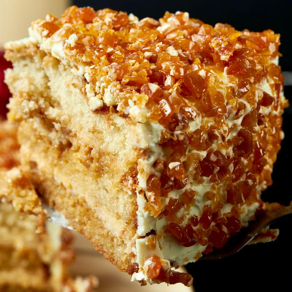 Novidade da Carole Crema para este natal! O Bolo Praliné Branco tem a massa de chocolate branco molhadinho. Recheado com muito creme crocante e coberto com crocante de castanha de caju. Цвет: Branco Peso aprox: aprox