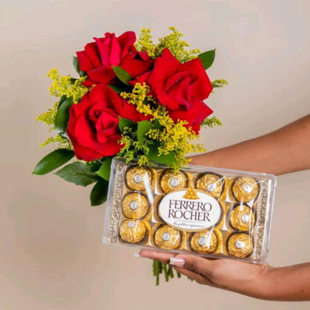 Este presente incrível consiste em um arranjo delicado de rosas Tango - uma seleção exclusiva de três unidades para encantar e inspirar. O bouquet é cuidadosamente arranjado com quatro unidades de folhagem verde luxuriante, sublinhando a beleza das flores. Mas a surpresa não para aqui: esta oferta é adoçada por doze chocolates Ferrero, muito amados por todos. Cada mordida é uma nova experiência de infusão de alegria doce. Escolha este presente para demonstrar seu amor, gratidão ou para simplesmente celebrar o dia.