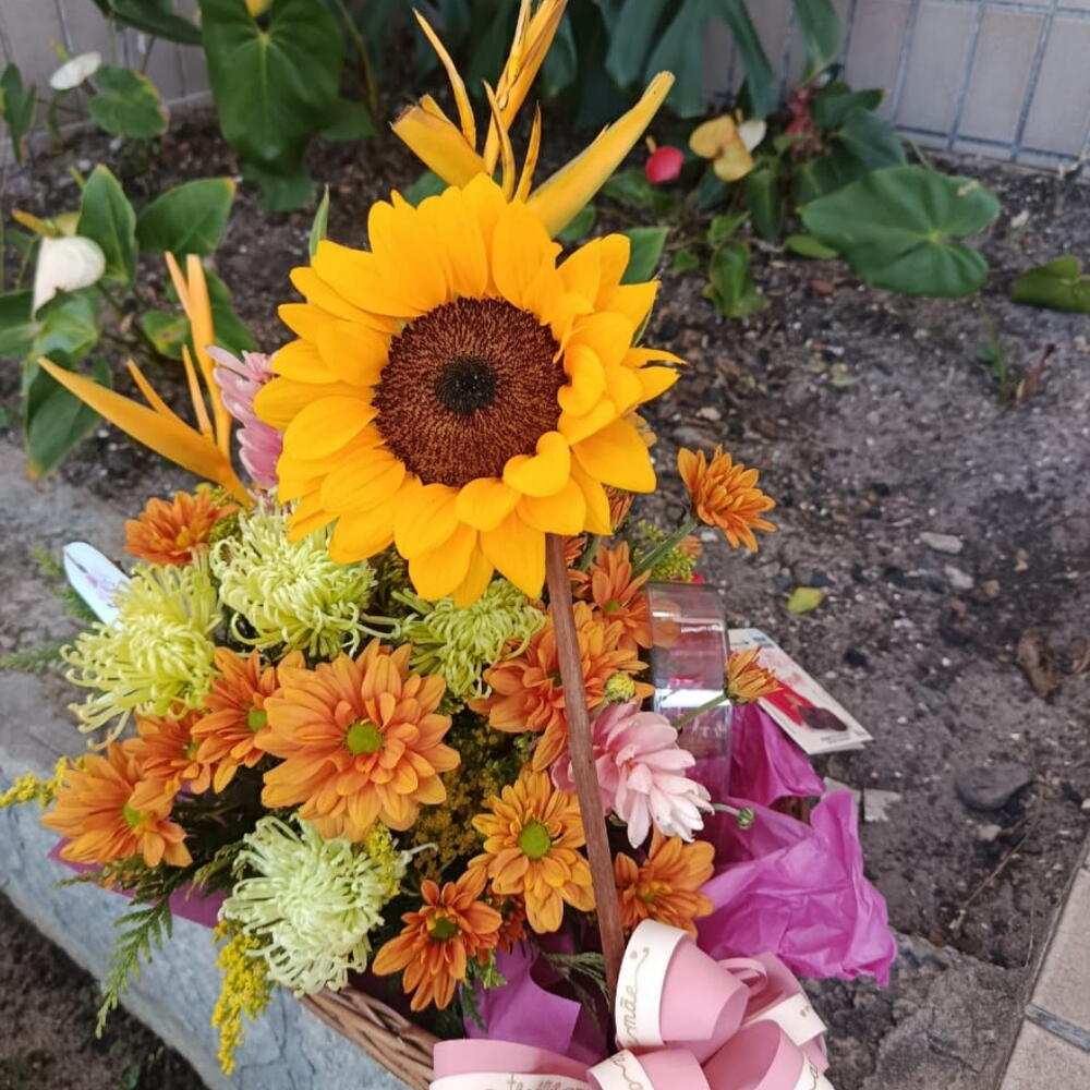 Esta luxuosa Cesta de Chocolate é a expressão perfeita de gratidão e carinho. Não apenas apresenta uma elegante unidade de cesta, mas também vem adornada com um encantador girassol e flores do campo, acrescentando um toque de frescor natural. O pacote completo é inteligentemente envolvido por uma unidade de embalagem com laço, garantindo que a experiência seja perfeita para o destinatário. Seja para um presente de aniversário, agradecimento ou simplesmente porque sim, esta cesta de chocolate fará o dia de qualquer pessoa mais doce e feliz.