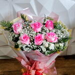Um buquê encantador com delicadas rosas cor-de-rosa, que transmitem amor, carinho e admiração Envolvido por nuvens de gipsófila e complementado com folhagens verdes que realçam ainda mais sua beleza. A embalagem em tons suaves de rosa, finalizada com laços elegantes, traz um toque romântico e sofisticado. Perfeito para surpreender alguém especial e transformar qualquer momento em uma lembrança inesquecível.