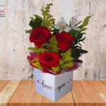 rosa vermelhas - 3 pcs astromelias - 1 pcs box (caixa) - 1 pcs