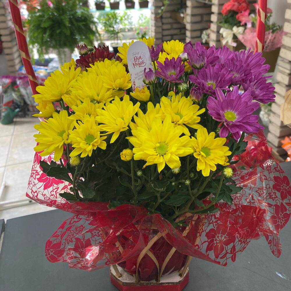 Este arranjo de flores, composto por 2 crisântemos, irá adicionar um toque elegante e vibrante a qualquer ambiente. Os crisântemos são conhecidos por sua beleza vivaz e são perfeitas para trazer um sorriso a qualquer rosto. Ideal para oferecer como presente ou para decorar sua casa ou escritório. Um toque de beleza natural para todos os dias.