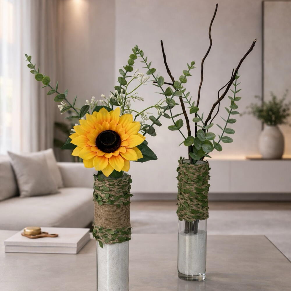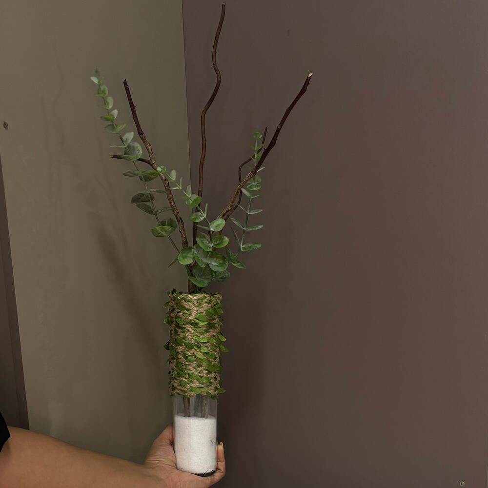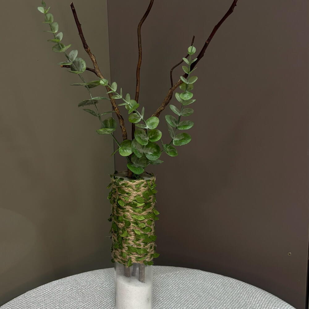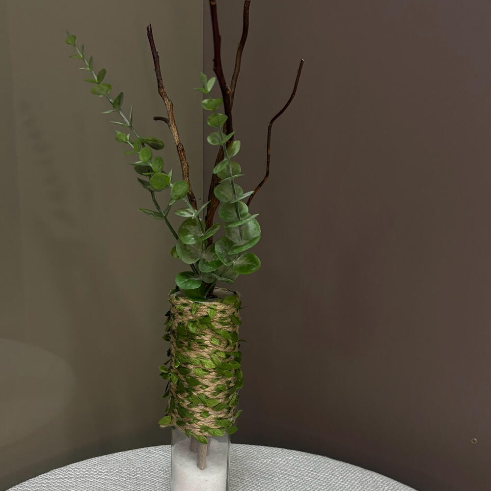 Descubra a encantadora simplicidade de nosso Arranjo de Flores. Composto por uma unidade de vaso de vidro decorado ao estilo rústico, combina beleza e autenticidade em um único elemento. Além disso, contém um arranjo delicado com eucalipto permanente e galhos secos, trazendo uma pitada de natureza e frescor para qualquer ambiente. Ideal para decorar sua casa ou como um presente elegante, este arranjo de flores é a combinação perfeita de estilo e graciosidade.