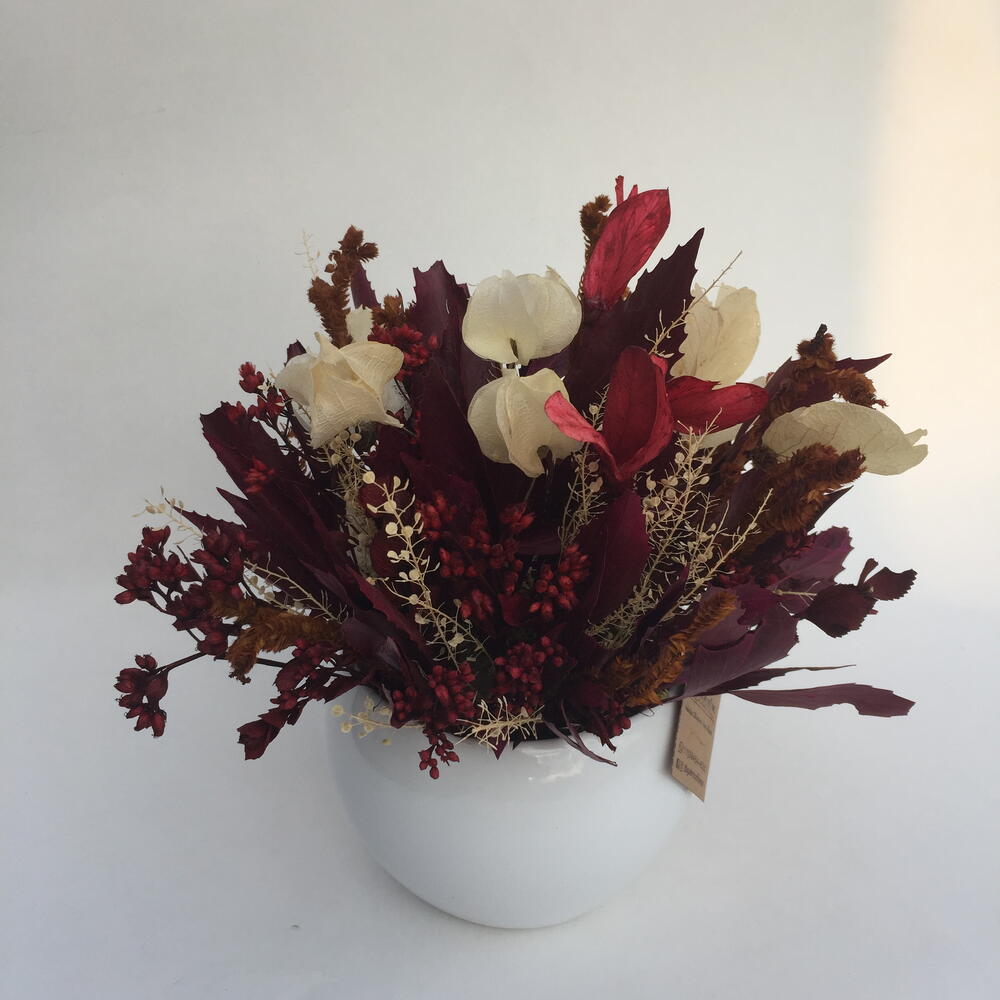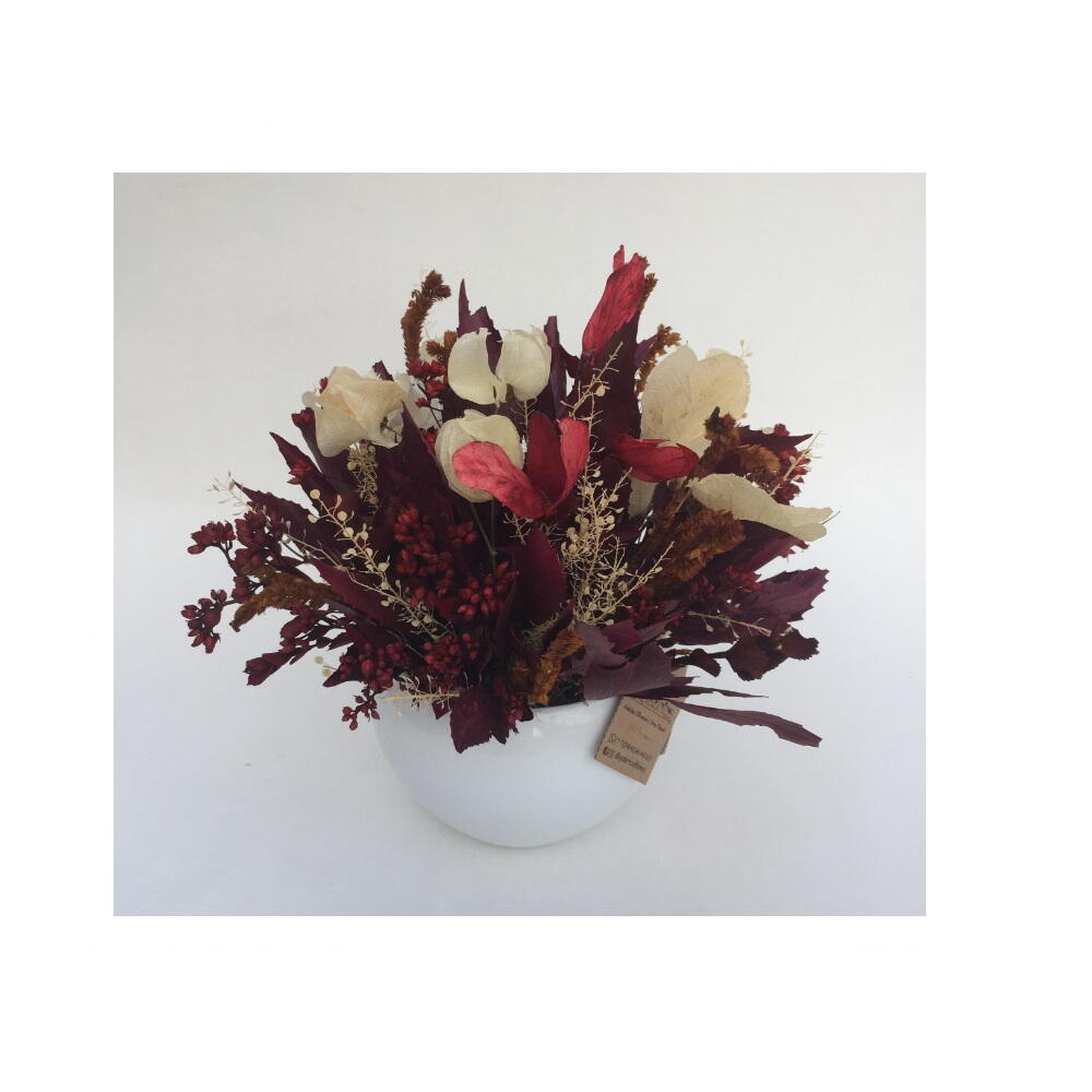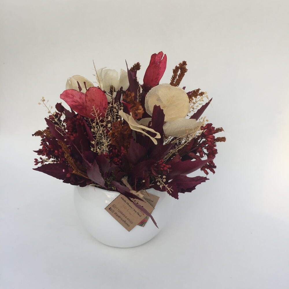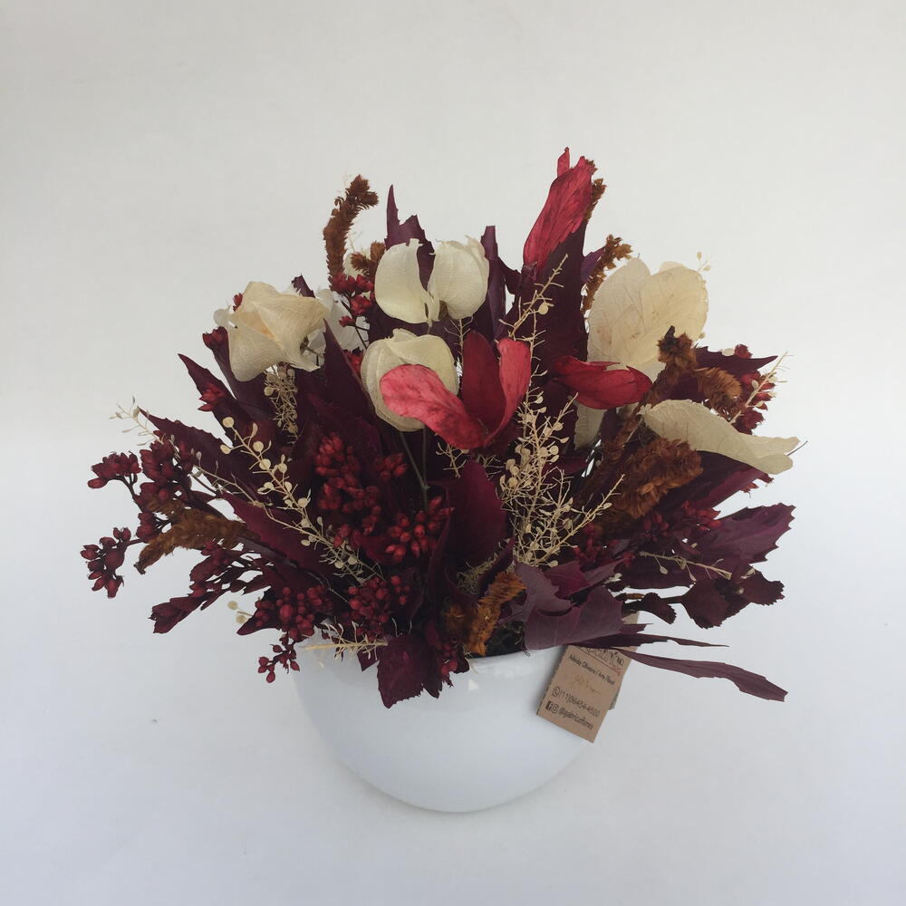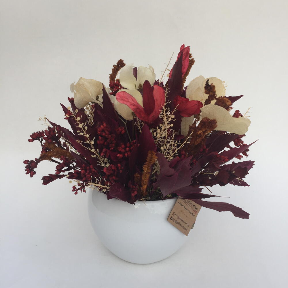 embalagem para envio (sacola ou caixa). - 1 pcs vaso de cerâmica p. - 1 pcs mix de flores naturais desidratadas compondo o vaso. - 1 pcs