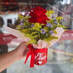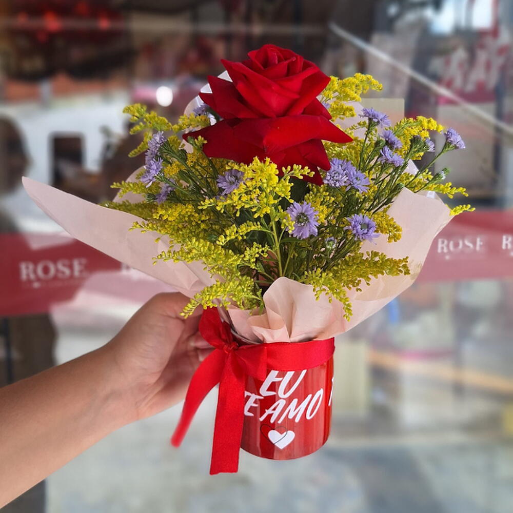 Descubra a beleza e a sofisticação neste arranjo de flores composto por uma rosa deslumbrante, cuidadosamente selecionada para expressar seus sentimentos mais profundos. Acompanha uma caneca exclusiva com a frase Te amo, perfeita para compartilhar um momento especial com quem você ama. Este conjunto elegante irá surpreender, seja como um presente romântico ou como uma decoração encantadora para casa.