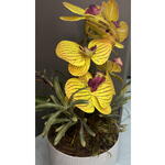 arranjo de orquídea amarela permanente - 1 pcs vaso bege texturizado com pés de 4 apoios - 1 pcs