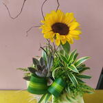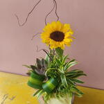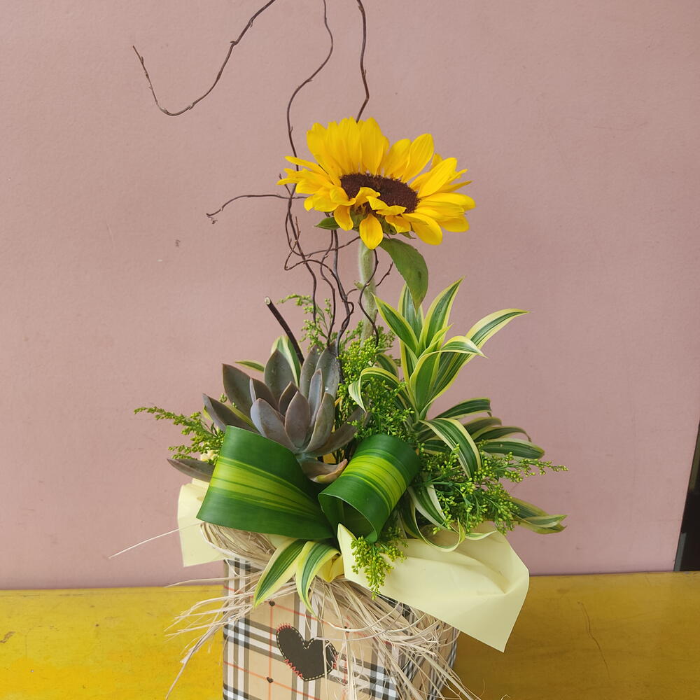 girassol - 1 pcs cachepo - 1 pcs folhagens especias - 1 pcs