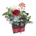 Este encantador arranjo de flores apresenta uma Rosa Vermelha Colombiana de alta qualidade, enriquecida por diferentes tons verdes de Folhagens e Eucalipto. Apreciada ainda mais pela presença delicada de Mosquitinhos, dando um toque adicional de beleza e elegância. Toda essa composição é delicadamente acomodada em uma bela caixa de madeira, complementada por um laço decorativo feito com uma fita de cetim. É a escolha perfeita para expressar sentimentos profundos e marcar momentos especiais.