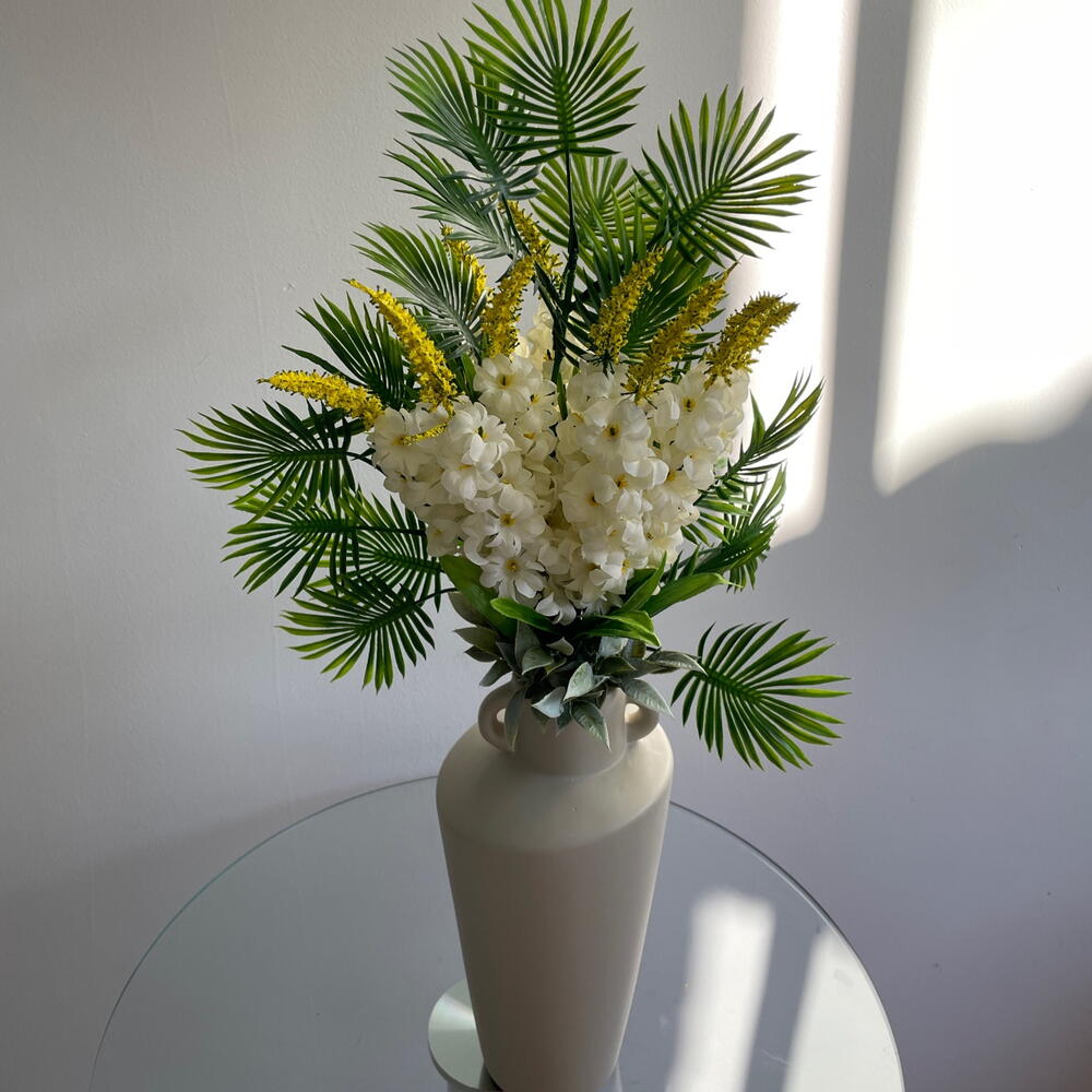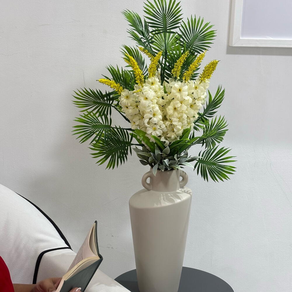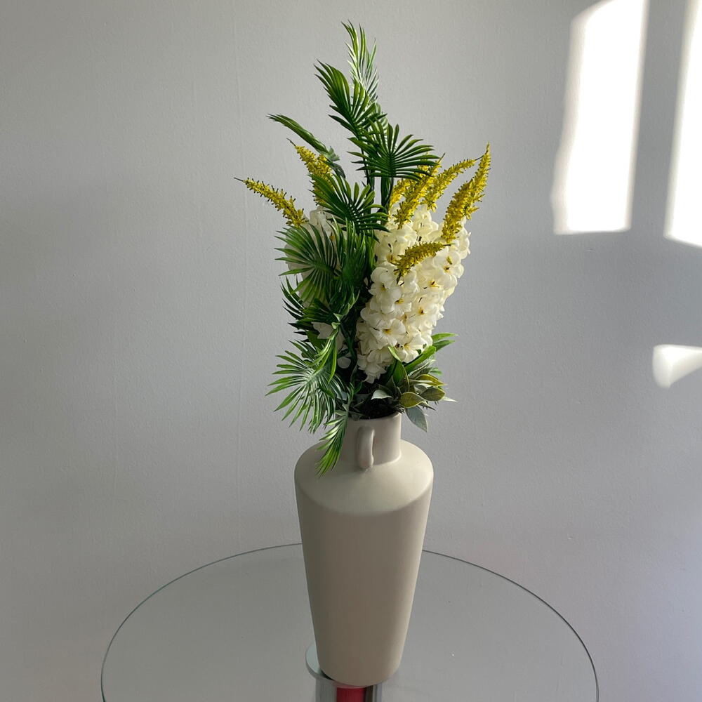 Este arranjo de flores é confeccionado com flores permanentes de alta qualidade. Possui a beleza estimulante da flora natural, mas com a vantagem de nunca murchar ou precisar de cuidados constantes. Este belo arranjo certamente destacará seus ambientes, proporcionando um toque de elegância e vivacidade. Perfeito para qualquer decoração, este arranjo de flores será uma peça atemporal em seu espaço.