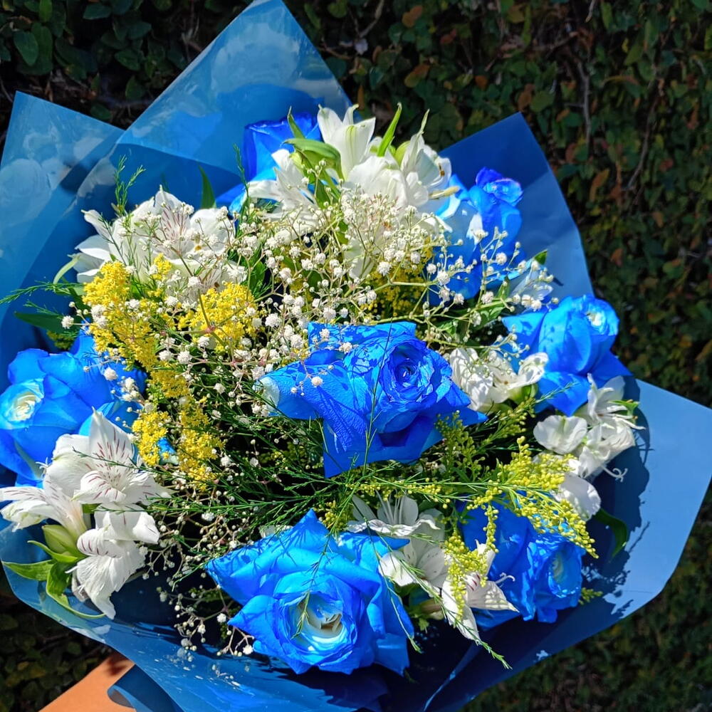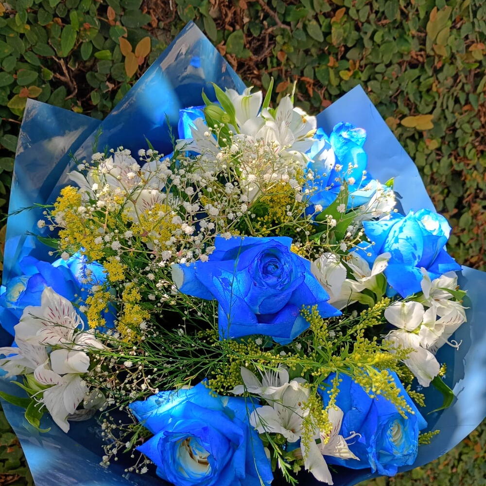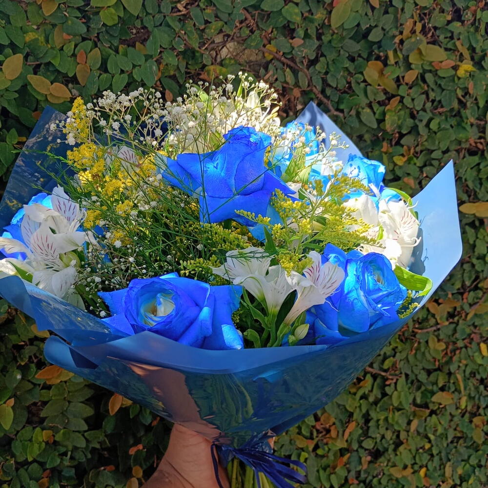 🌸 Buquê Blue Mescla 💙 Um arranjo encantador que transmite elegância e delicadeza em cada detalhe. O Blue Mescla combina a intensidade das rosas azuis com a leveza das flores brancas e toques de amarelo, criando um contraste moderno e apaixonante. 💐 Composição: • Rosas azuis vibrantes • Astromélias brancas delicadas •. gypsophila • Solidago amarelo • Folhagens naturais • Embalagem premium em tons de azul ✨ Ideal para: • Presentear alguém especial • Surpreender em aniversários • Demonstrar carinho e admiração • Ocasiões elegantes e marcantes 💙 Um buquê que foge do comum e impressiona pela sua beleza única. 🚚 Entrega rápida 📲 Peça agora: 11