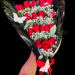 Lindo bouquet em formato de cascata com 18 rosas nas cores a sua escolha , em uma linda embalagem que você pode escolher a cor e duas lindas borboletas para decorar!