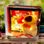 chocolate suflair 50gr - 1 pcs linda caixa de presente - 1 pcs caixa de bombom ferrero rocher 50gr - 1 pcs linda pelucia capivara (chaveiro - 12 cm) - 1 pcs lindo fio led iluminação - 1 pcs