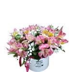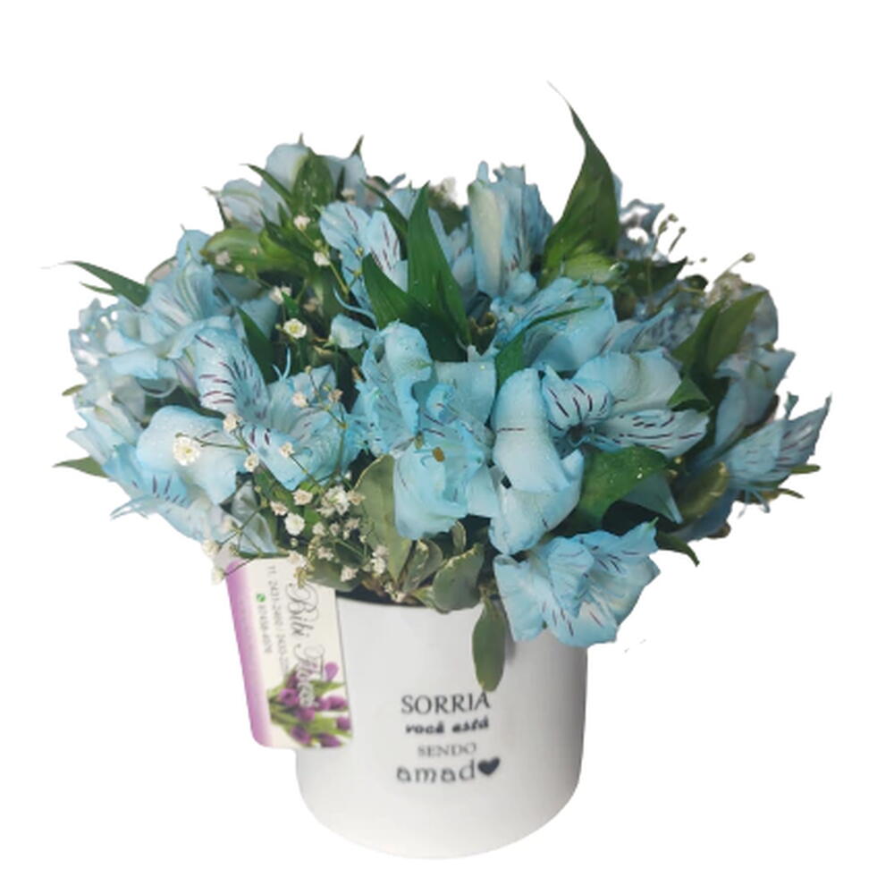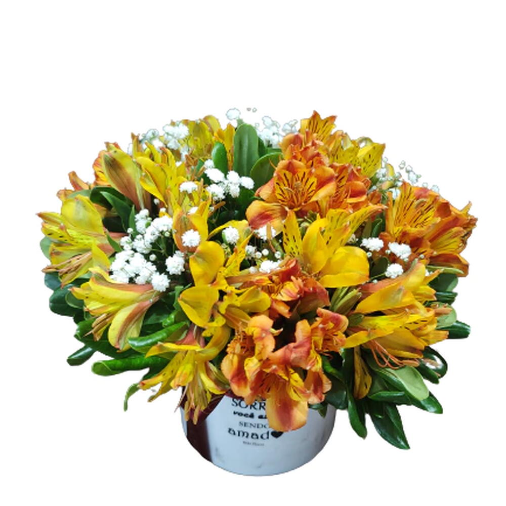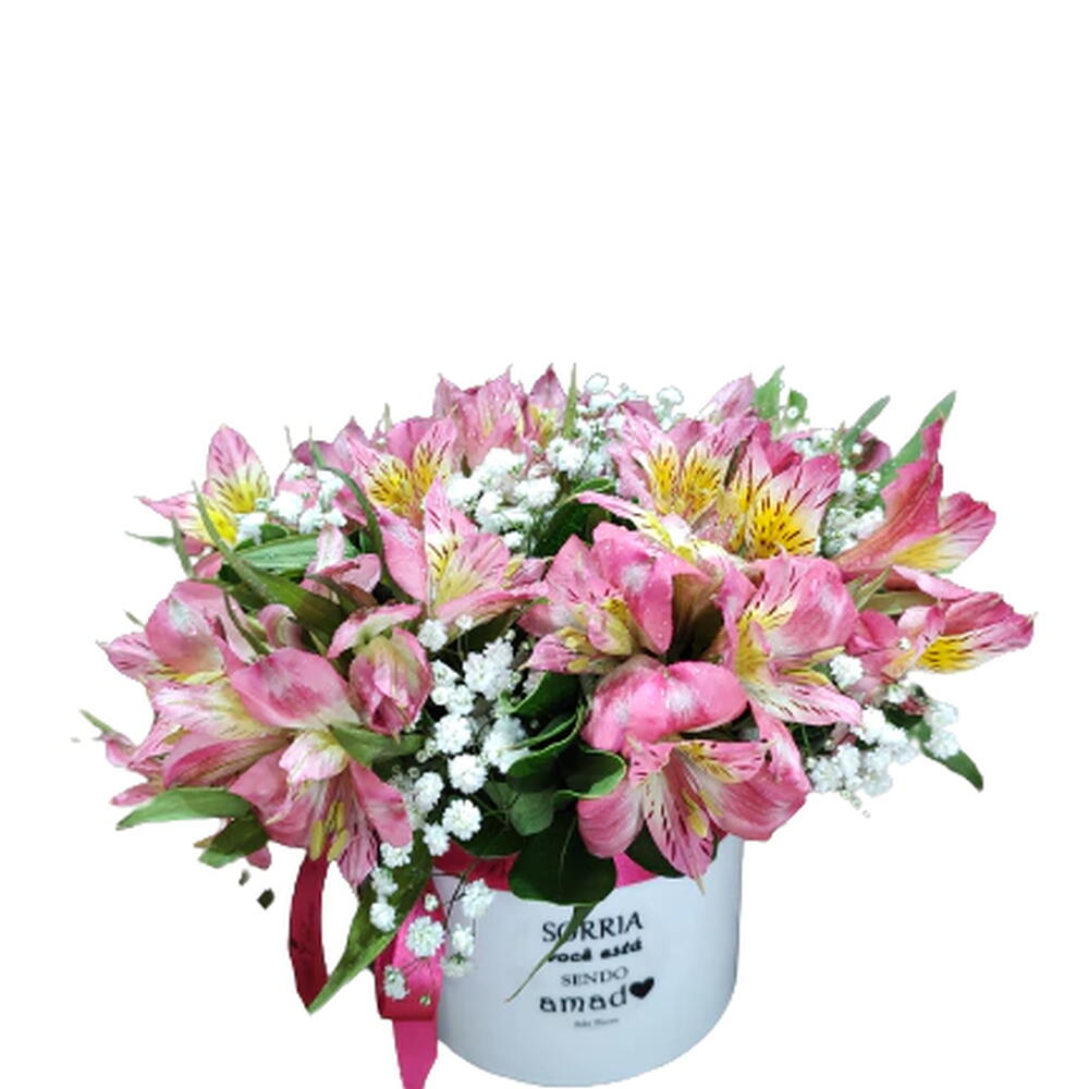 omposição: Box com um lindo arranjo de astromélias em uma base floral, acomodado em uma caixinha de acrílico branca. Você pode personalizar a frase para deixar ainda mais especial! Durabilidade: As flores de corte duram em média de 5 a 7 dias, garantindo que você tenha um toque de beleza por mais tempo em sua casa. Verifique a disponibilidade de cores, pois a imagem é meramente ilustrativa e pode variar conforme o estoque. Não perca a chance de presentear alguém ou se mimar com essa delicadeza!