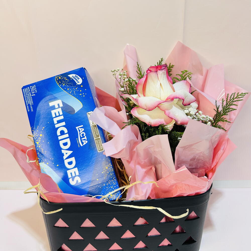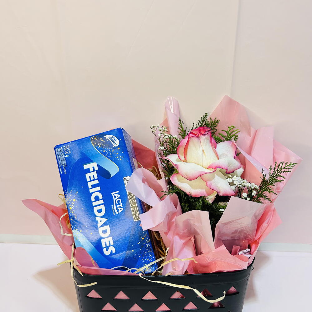 caixa de bombom - 1 pcs arranjo floral com 1 rosa - 1 pcs