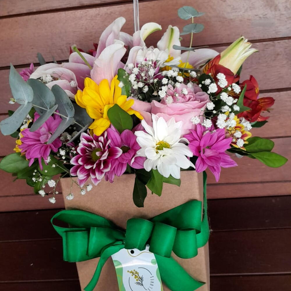 Este Box de Flores é uma mistura vibrante de cores e fragrâncias. Criado com uma seleção variada de flores, é uma maneira ideal para expressar seus sentimentos e elevar o ânimo de qualquer pessoa. Vem acomodado em uma caixa de papelão resistente e elegante com um delicado laço. Pronto para ser entregue como um presente que certamente será lembrado.