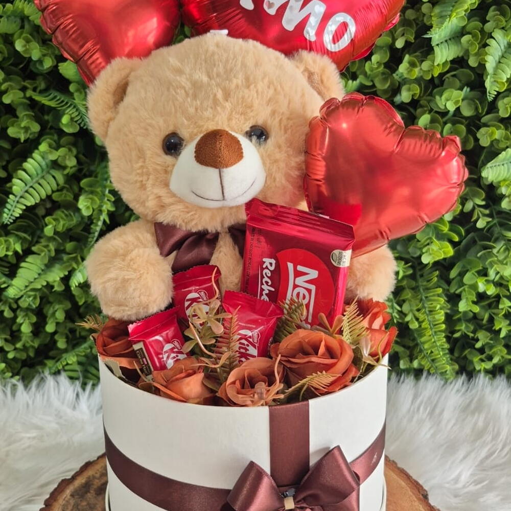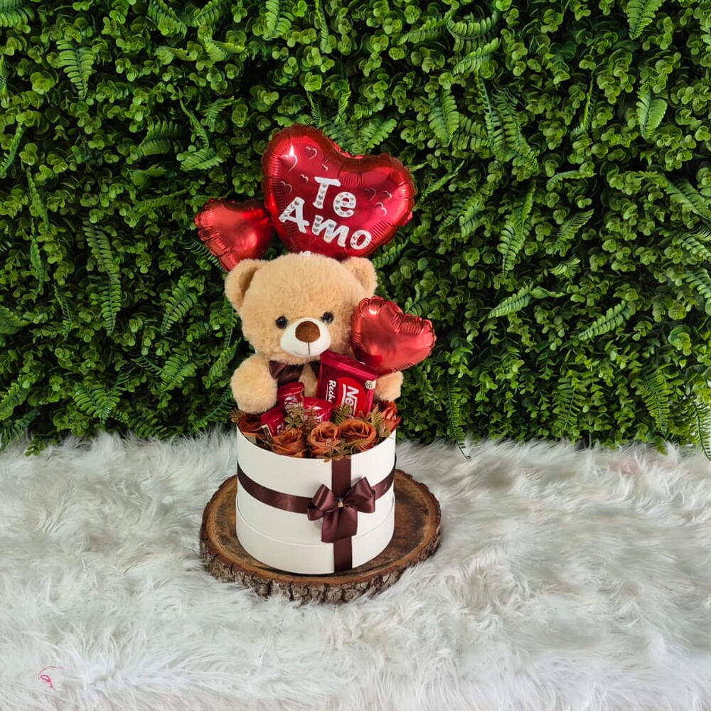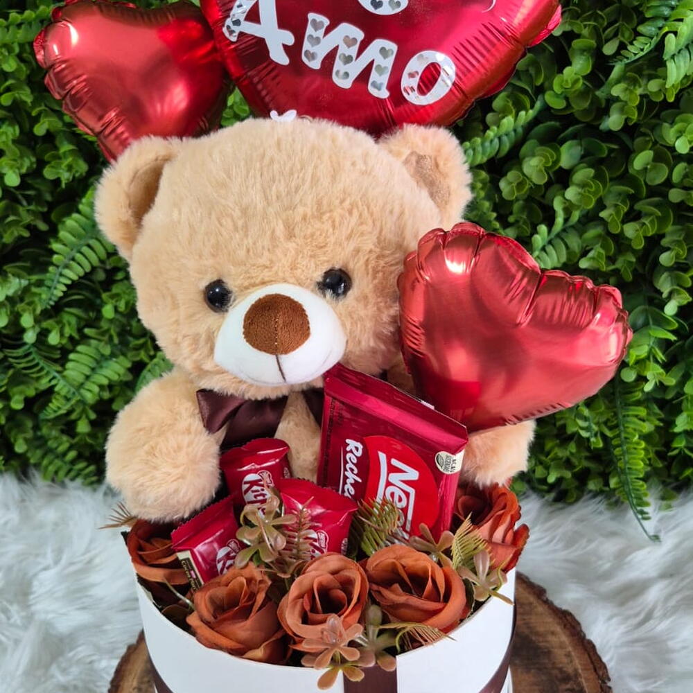 Encante com um presente que fala direto ao coração ❤️🐻 Nossa Box Amor com Ursinho é a escolha perfeita para surpreender em momentos especiais. A delicada caixa redonda, finalizada com laço elegante, traz um ursinho de pelúcia super macio, balões metalizados em formato de coração com a mensagem “Te Amo” e uma seleção irresistível de chocolates, como KitKat e Nestlé. O arranjo é complementado por lindas flores em tons quentes, que deixam a composição ainda mais sofisticada e apaixonante. Um presente completo, que une carinho, sabor e beleza em cada detalhe. Perfeito para Dia dos Namorados, aniversário, pedido especial ou para transformar um dia comum em um momento inesquecível. Demonstre seu amor com a delicadeza e o charme que só a Impressione Flores oferece. 💐✨