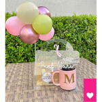 suculenta - 1 pcs bag cristal - 1 pcs estojo de ferrero pequeno - 1 pcs caneca pequena com letra inicial - 1 pcs buque de mini balões - 1 pcs