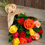 Buquê 12 Rosas Coloridas no Kraft