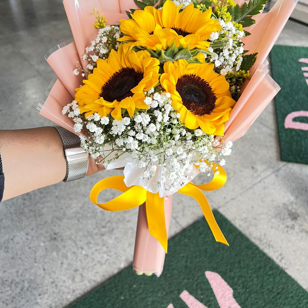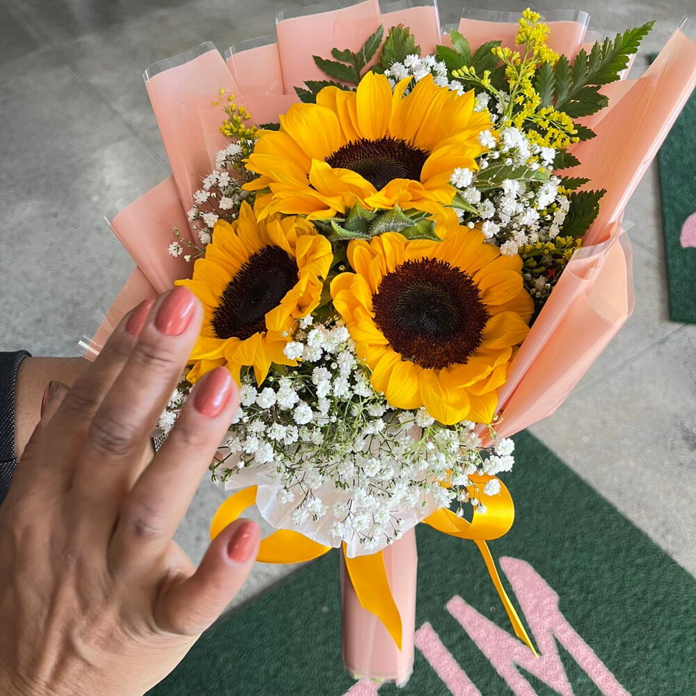 Deslumbre-se com este deslumbrante buquê de girassóis. Composto por 3 unidades, essas flores exuberantes são garantia de alegria e esplendor. Sua coloração vibrante as torna uma escolha perfeita para alegrar qualquer ambiente. É o presente ideal para expressar emoções positivas e irradiar carinho. Com eles, qualquer ocasião se torna especial.