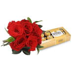Um verdadeiro charme em forma de presente! Esta combinação é composta por seis deslumbrantes rosas vermelhas, complementadas com uma unidade de folhagens, dando um ar de elegância e sofisticação. Embalado com um laço, que adiciona um toque de realeza ao presente. E como não pode faltar chocolate, uma caixa de Ferrero Rocher com oito unidades faz parte deste conjunto incrível, tornando-o a escolha perfeita para expressar seu carinho e amor em qualquer ocasião.