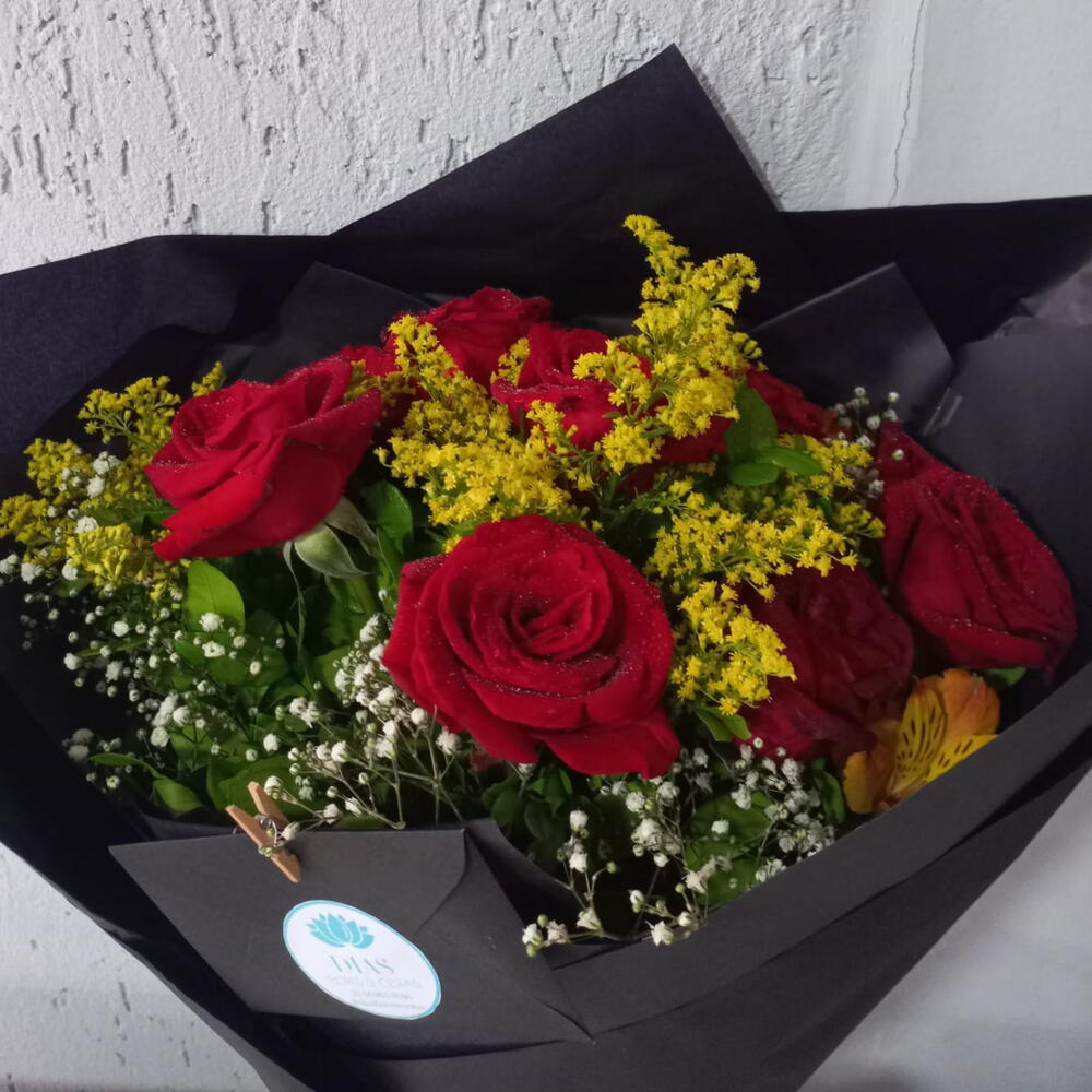 Este buquê encantador composto por 12 rosas luxuosas, 3 flores de chuva de prata, 3 tango vibrantes e 2 murta frescas, é um verdadeiro esplendor da natureza. Cada flor foi selecionada e alinhada à mão por nossos especialistas floristas para criar um arranjo fantástico que cativa. Surpreenda e encante sua pessoa especial com este buquê, que transmite nobreza e beleza em igual medida. Sem dúvida, será o centro das atenções em qualquer ambiente.