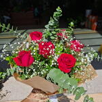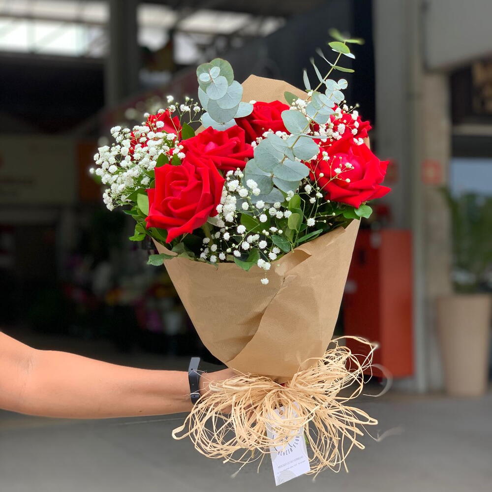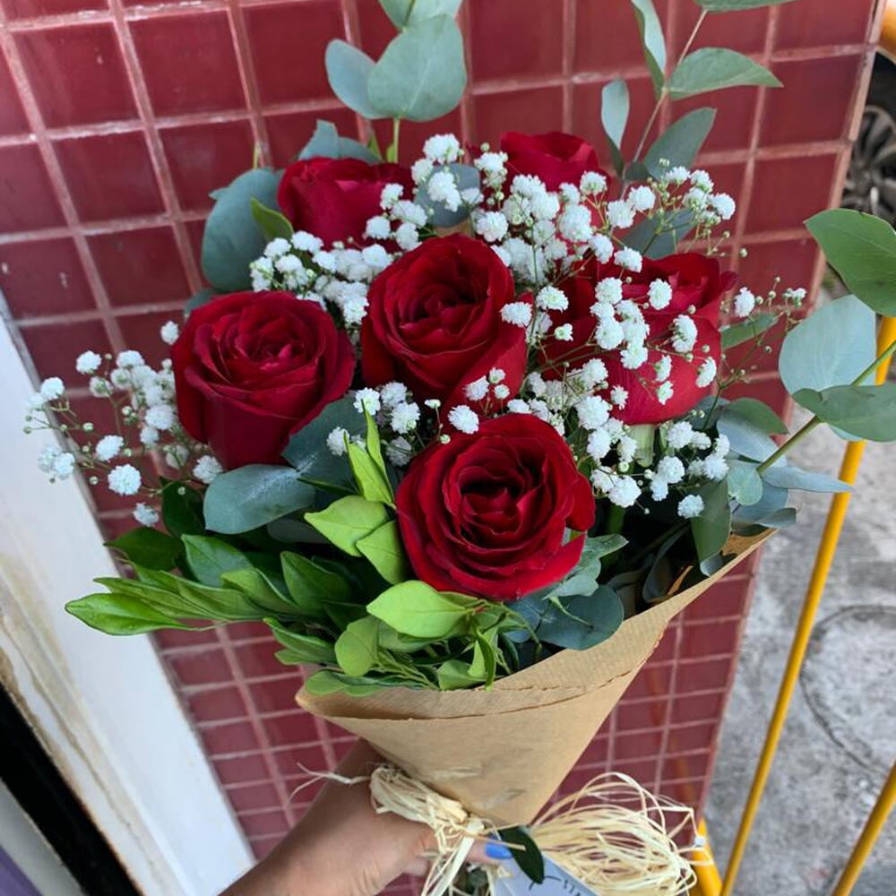 Este buquê é uma sofisticada combinação de 6 belas rosas, acompanhadas por delicados Gypson. A fragrância das flores é realçada pelos acentos de eucalipto e folhagem, criando um aroma leve e revigorante. O buquê é delicadamente embrulhado em um papel Kraft de qualidade e adornado com um laço elegante, tornando-o o presente perfeito para qualquer ocasião.