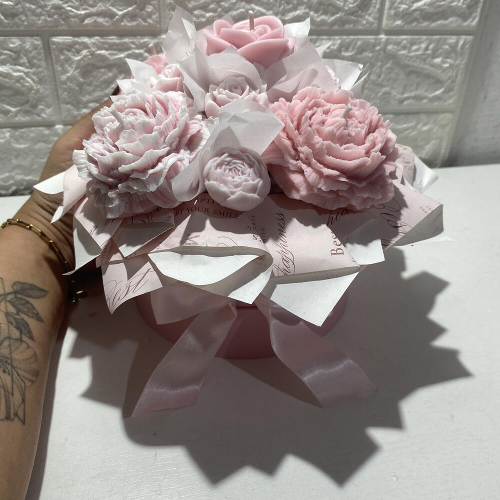 embalagem de designer - 4 pcs laço em cetim - 1 pcs box (caixa) - 1 pcs buquê de velas aromáticas - 13 pcs