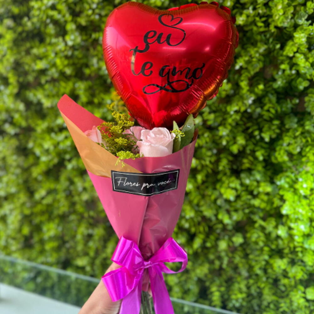 Buquê + Balão Eu Te Amo