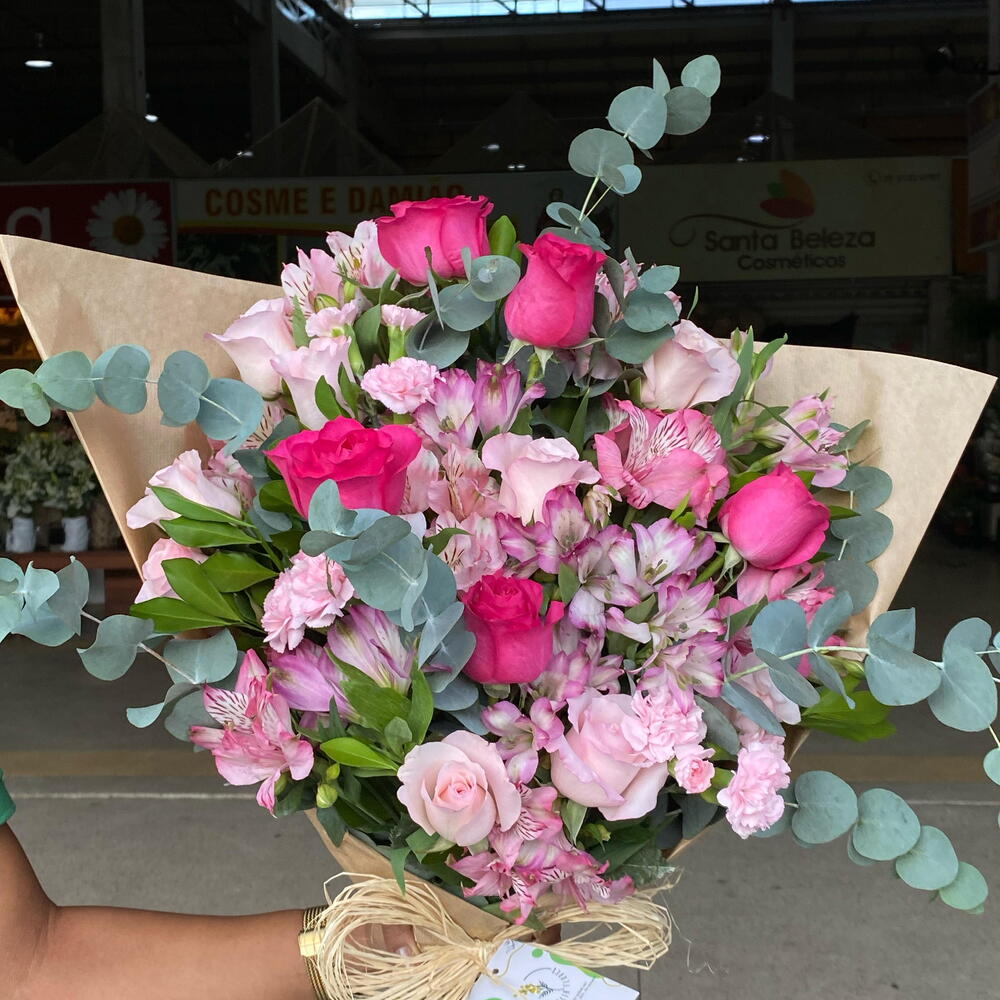 O Buquê Charmoso da Acácia Flores é a escolha ideal para transmitir amor e sofisticação. Combinando astromélias, lírios cor-de-rosa e lisianthus, este arranjo em tons de rosa é complementado pela frescura do eucalipto e tango, criando uma harmonia encantadora de cores e aromas. Perfeito para ocasiões especiais, o Buquê Charmoso é uma forma única de surpreender e expressar sentimentos sinceros.