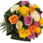 Este buquê deslumbrante combina o charme e a vivacidade de 20 rosas coloridas com o verde sereno de uma únicas folhagem. Para completar esta composição apaixonante, um laço aliado à esta paleta de cores dá um toque final à este presente perfeito. Seja para comemorar um aniversário, aniversário de casamento ou simplesmente mostrar seu amor, este buquê é a escolha perfeita.