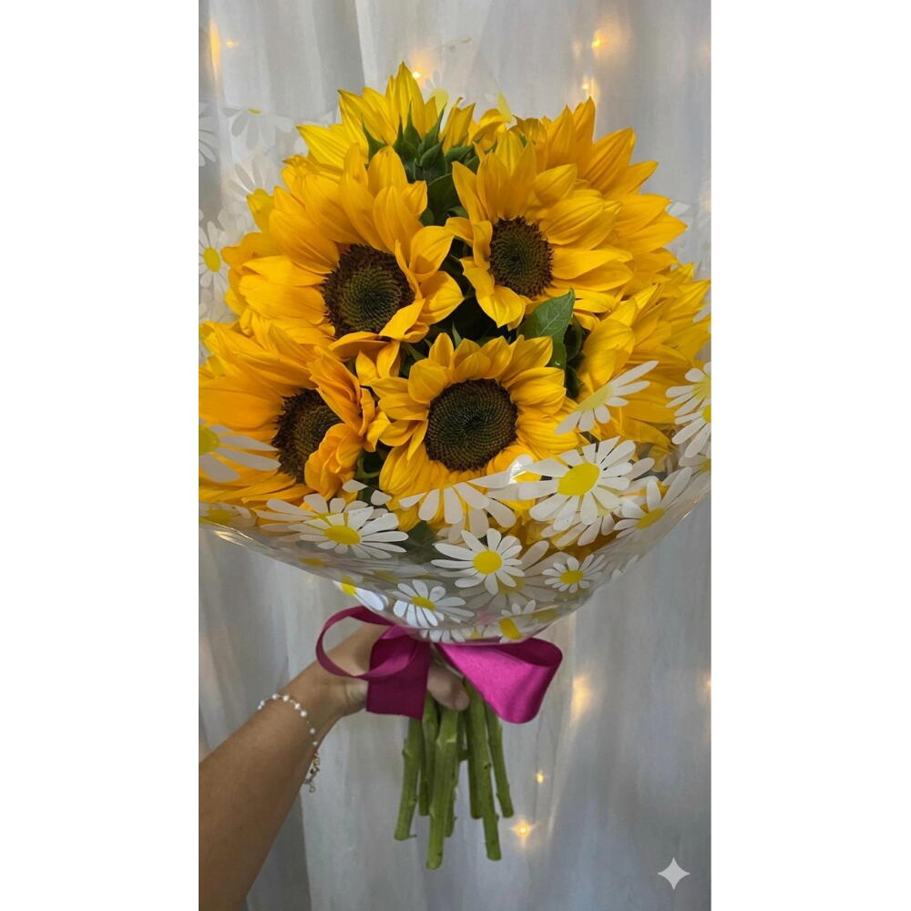 Um presente grandioso que transmite alegria, luz e sofisticação! O buquê com 12 girassóis, cuidadosamente selecionados, é ideal para marcar momentos especiais e impressionar com sua presença vibrante. O acabamento com laço de cetim dá um toque delicado e elegante, tornando este arranjo ainda mais inesquecível.